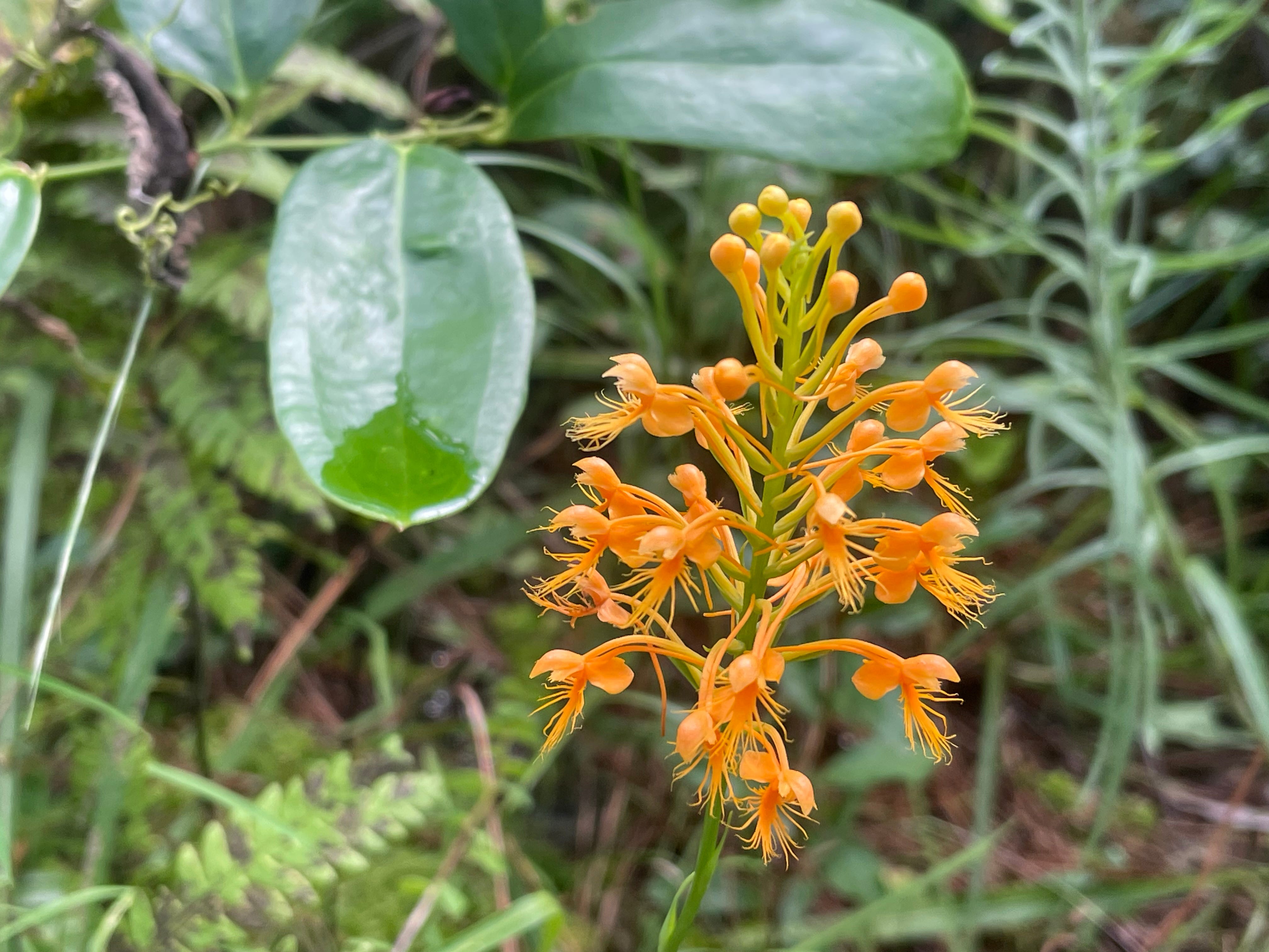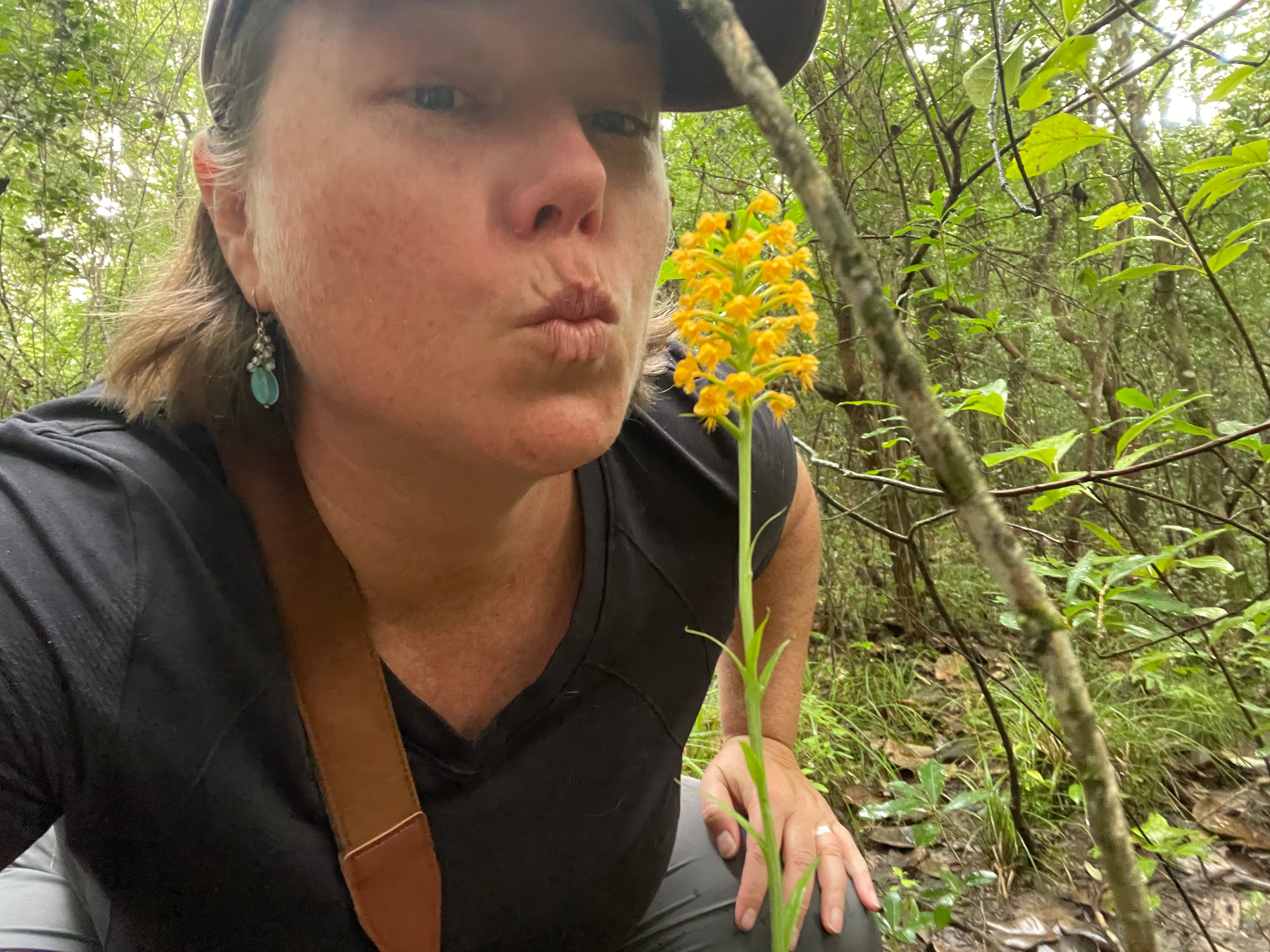 Finally, after lunch in Woodville, we made our way to our final stop for the day. Thunder rumbled in the distance and the sky grew blue-gray and heavy with rain. The radar showed passing thunderstorms that we managed to dodge before arriving to the plant I’ve been trying to see for a few years now, Platanthera cristata, the crested orange bog orchid.
