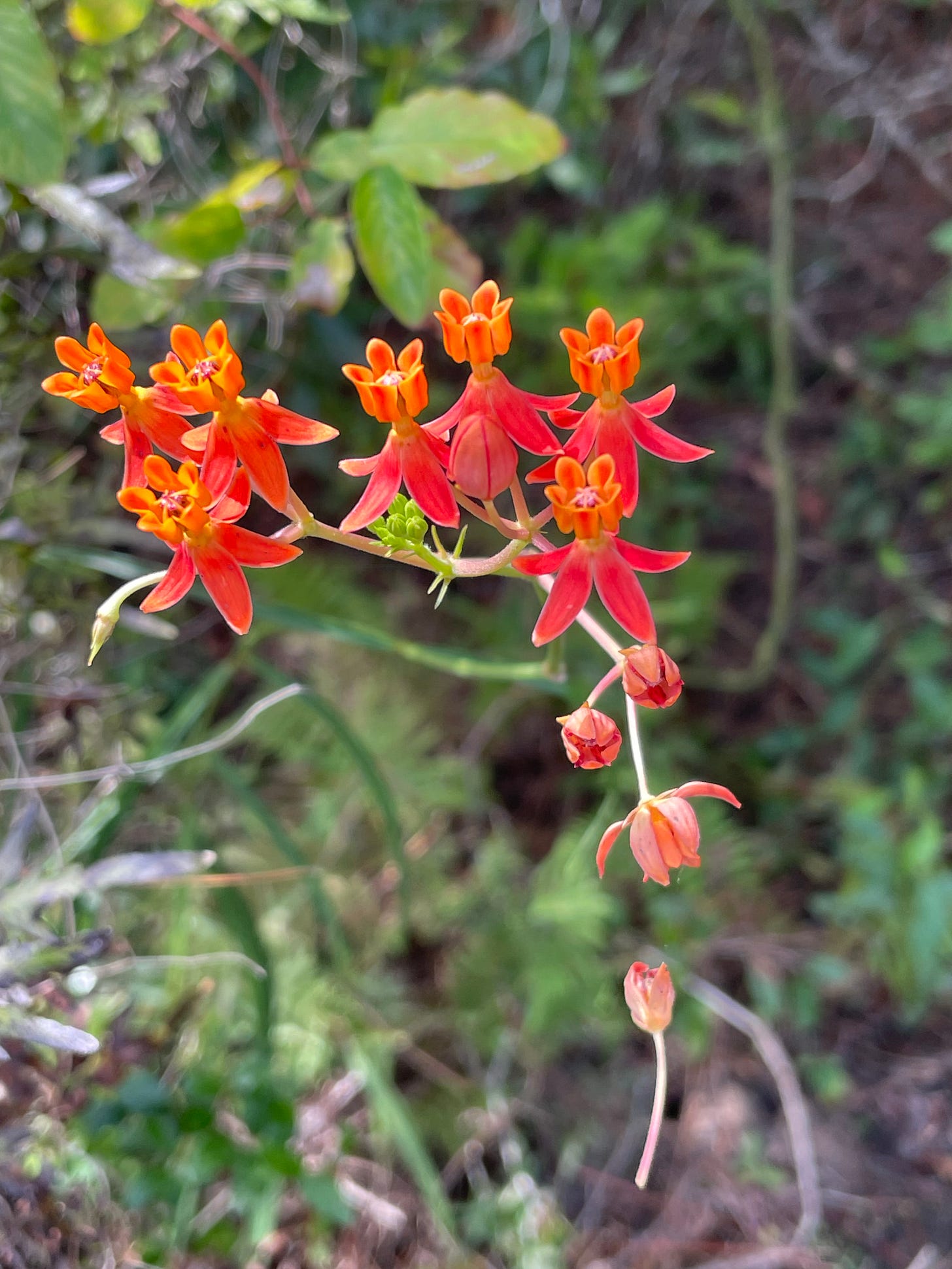 Next, we had a short side excursion to visit a population of Asclepias lanceolata, fewflower milkweed, for seeds—not in the Thicket…Top Secret Location. Said Top Secret Location was scorching and out in the open and I regretted agreeing to visit the site almost immediately. I stuck it out but resolved never to return this time of year without a hiking umbrella. Lots of stops for sips of Gatorade were had. My bandana was filthy from snot and sweat by the time all was said and done.